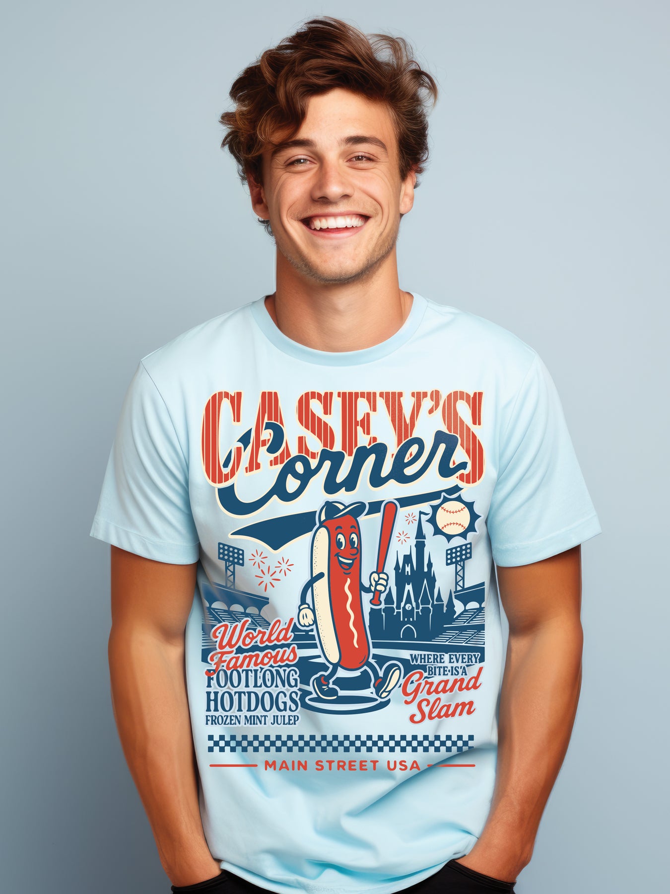 Step up to the plate in style with our Casey’s Corner Shirt, inspired by the legendary hotdog stand on Main Street, U.S.A. in the Magic Kingdom!