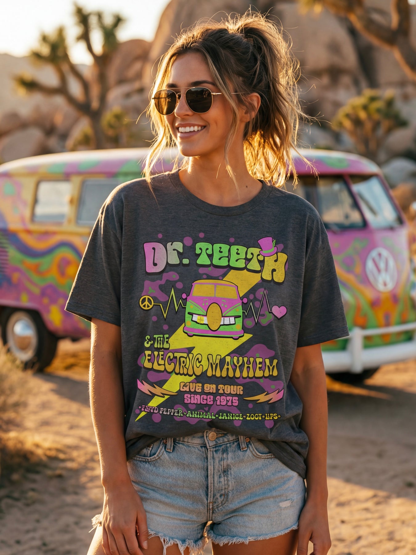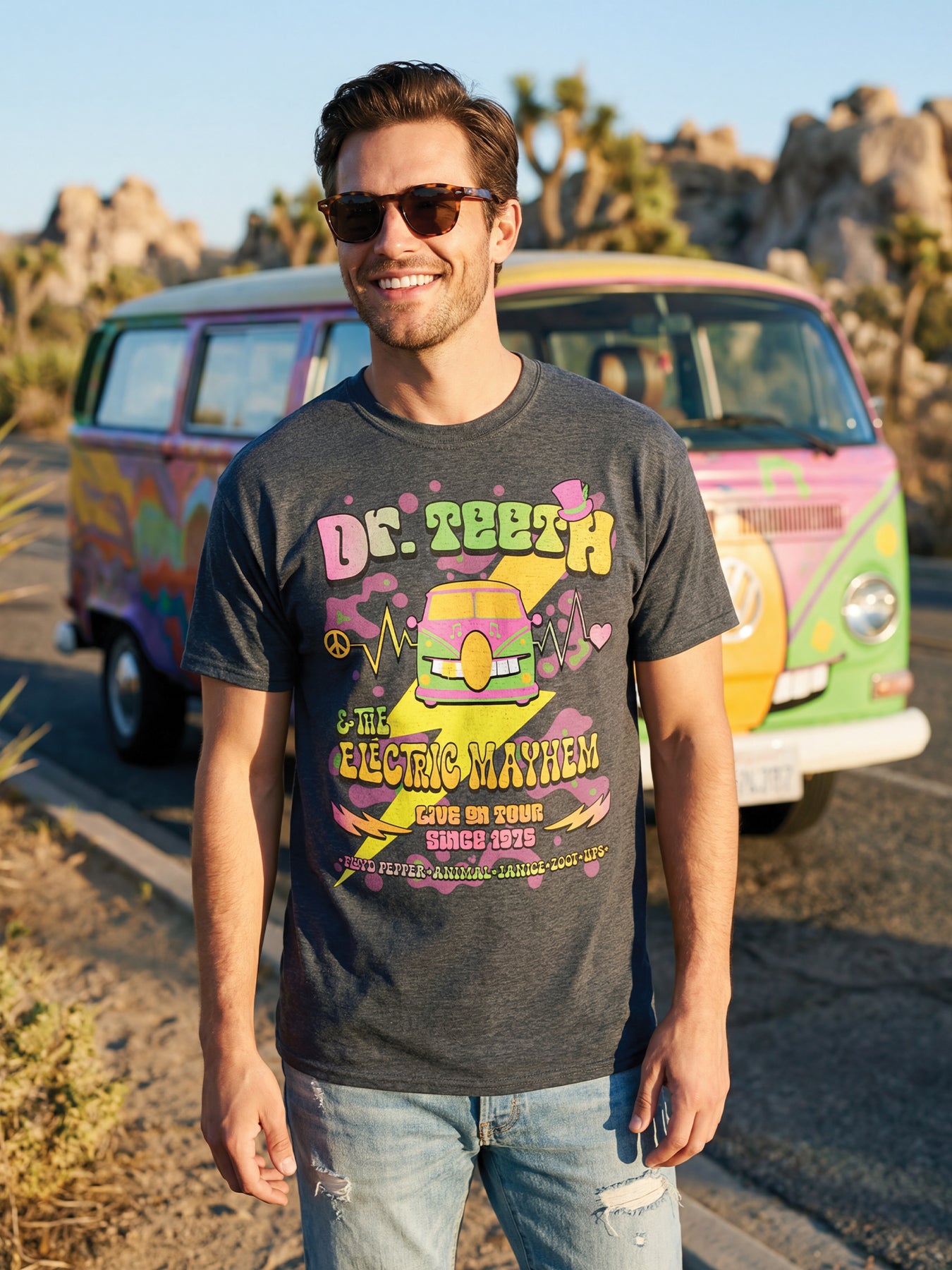 Celebrate the Grooviest Band on the planet with this inspired shirt for the Muppets house band, Dr. Teeth and the Electric Mayhem! Tune in to their new show on Disney + while showing how much you are down with the Mayhem... One Mind, One Melody, One Mayhem!
